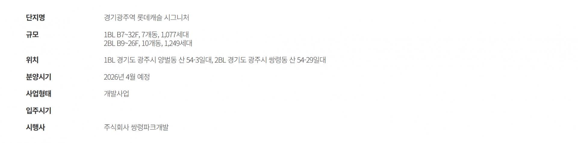 상호명 : 쌍령공원롯데캐슬 분양정보홈페이지ㅣ
